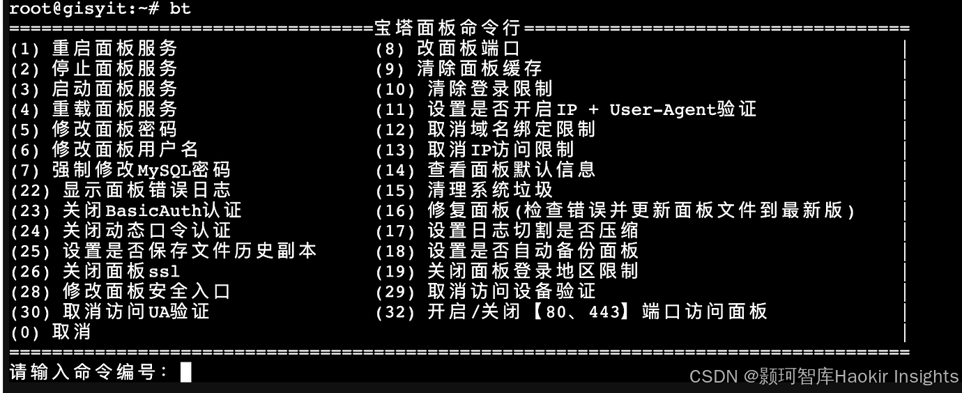 进入宝塔命令行管理界面。