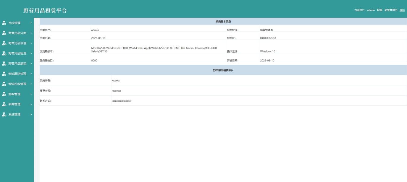 (1)管理员可以对野营用品的类别及野营用品信息、站内新闻信息进行管理,对其进行增删改查等操作。