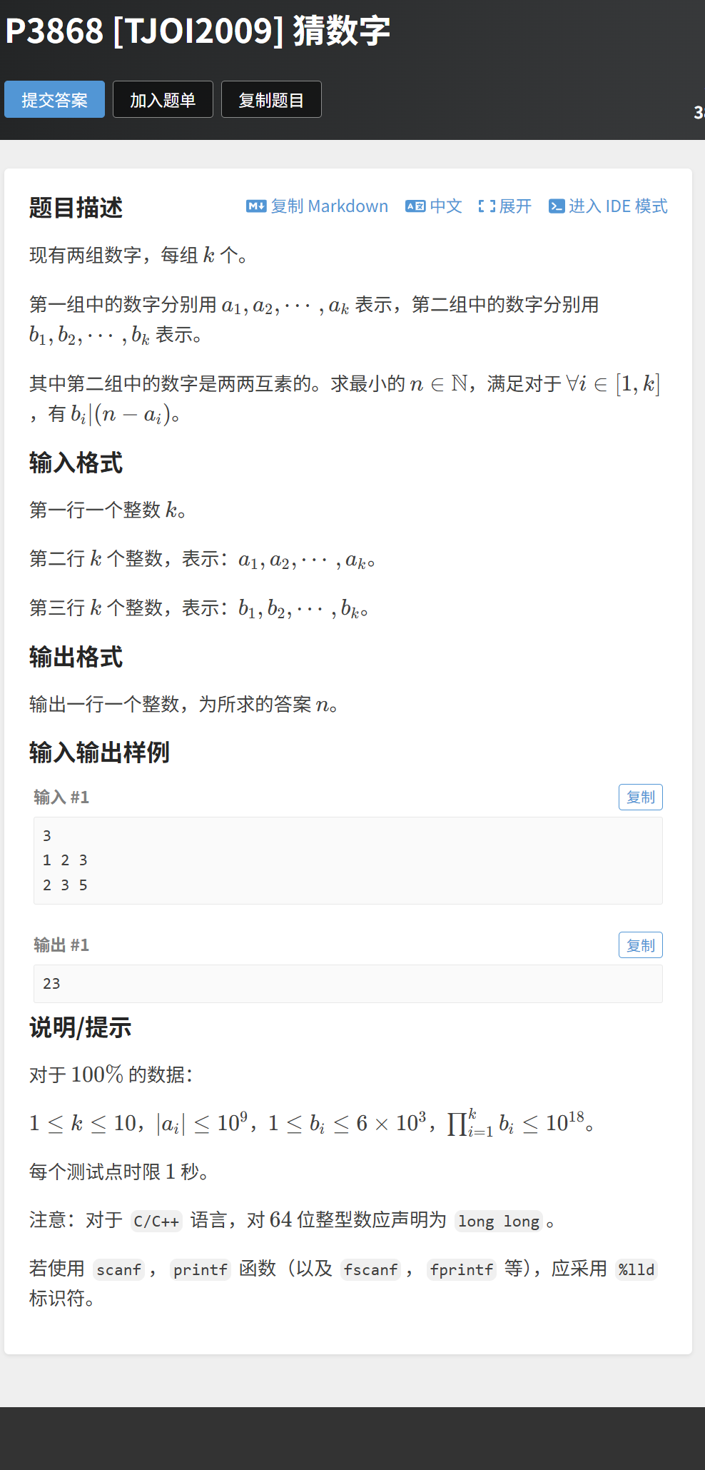 六、实战例题 2:洛谷 P3868 [TJOI2009] 猜数字