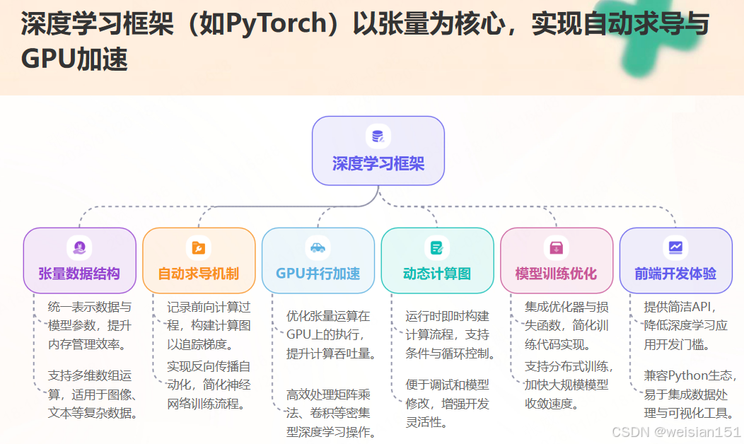 开发者只需定义张量形状和运算,框架自动完成:
