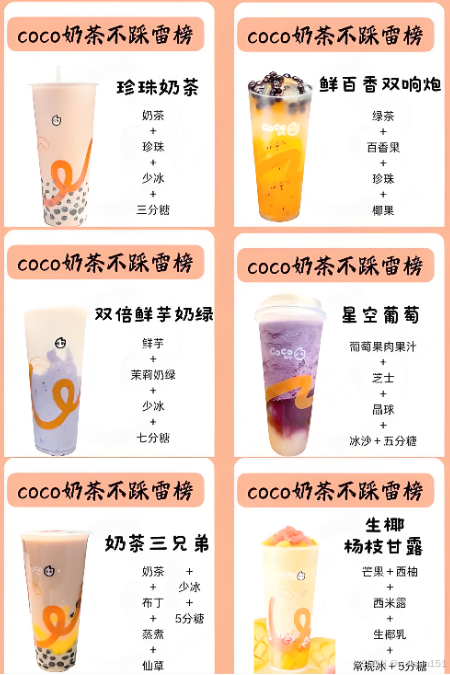 - 奶茶店订单表: