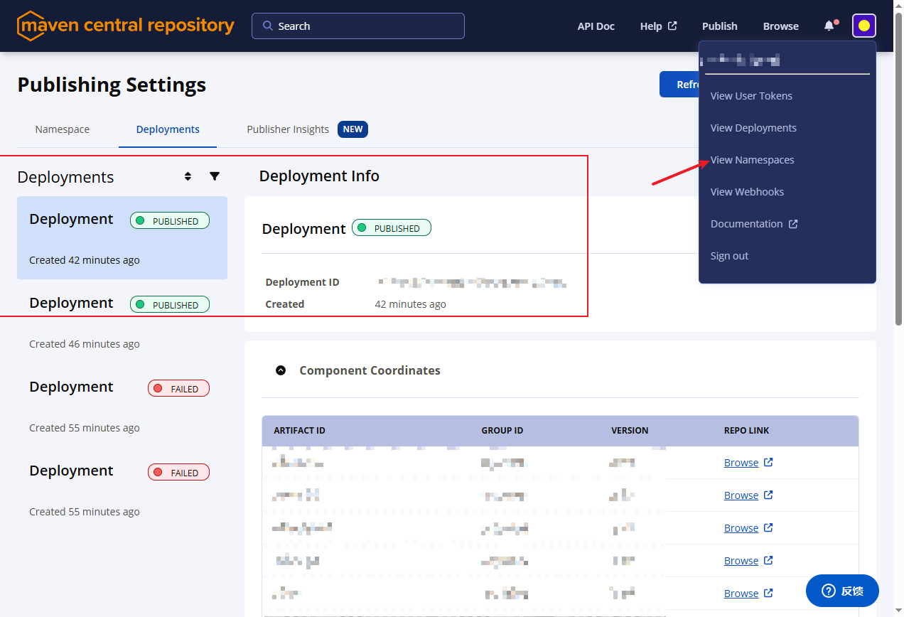 登录 https://central.sonatype.com/