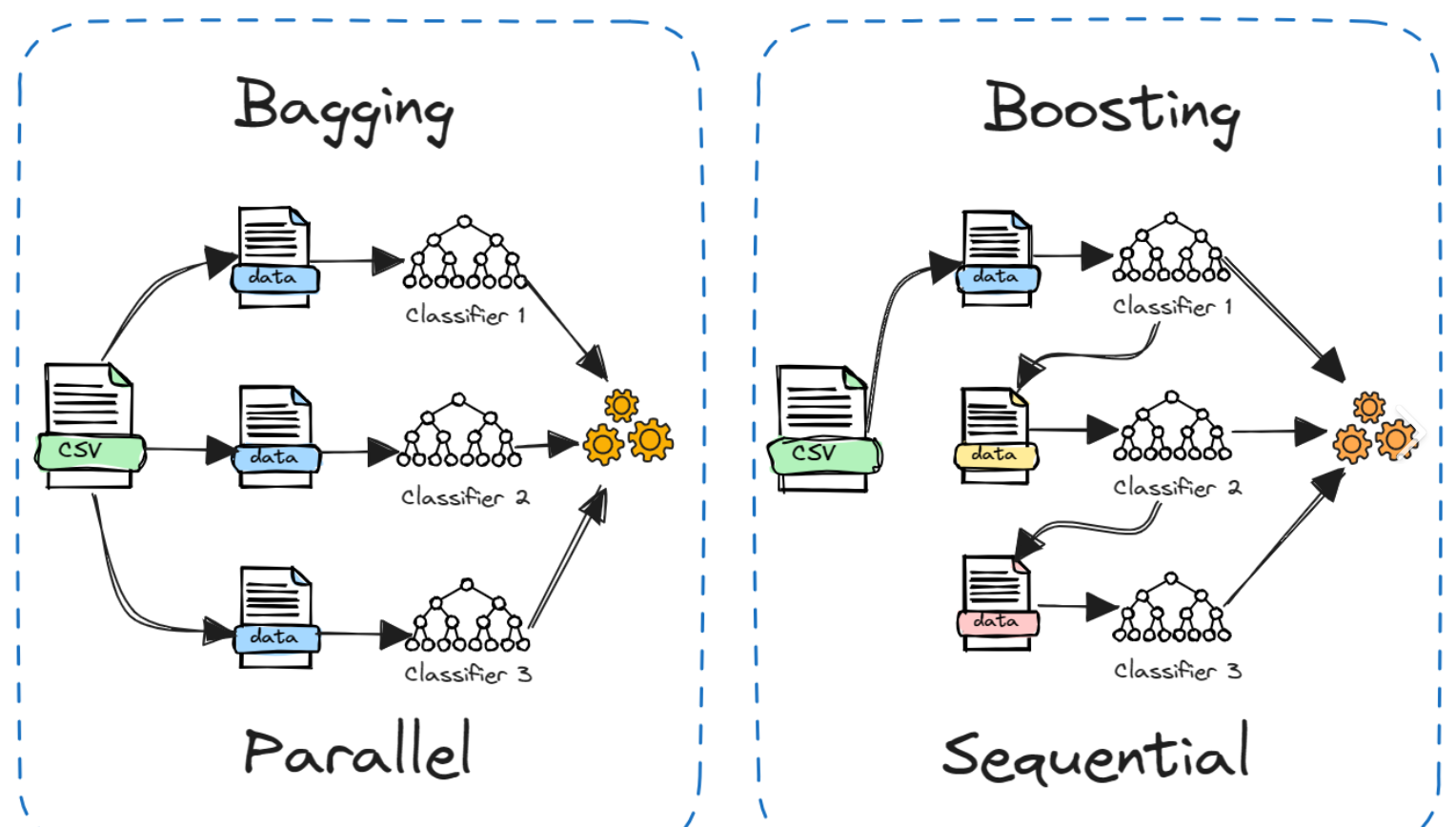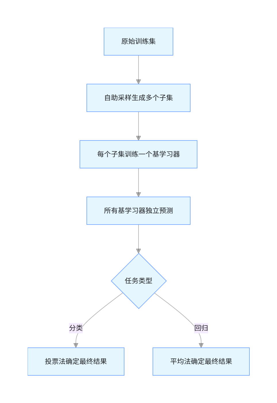 Bagging(Bootstrap Aggregating)的核心流程:
