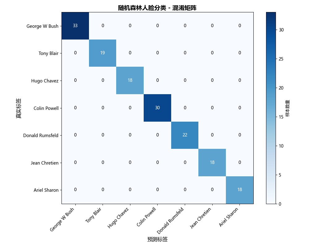 - 随机森林分类:对降维后的特征进行分类,识别不同的人脸