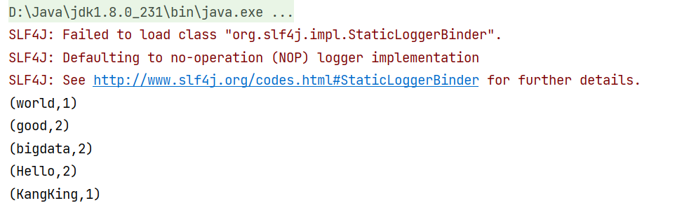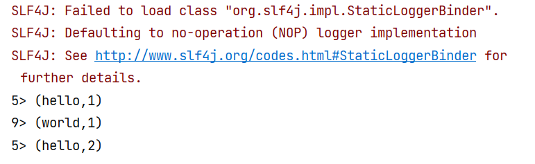 在没有配置上面的信息的时候,他默认是流处理;输出结果如下
