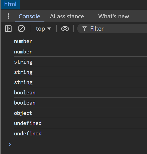 console.log(typeof a);