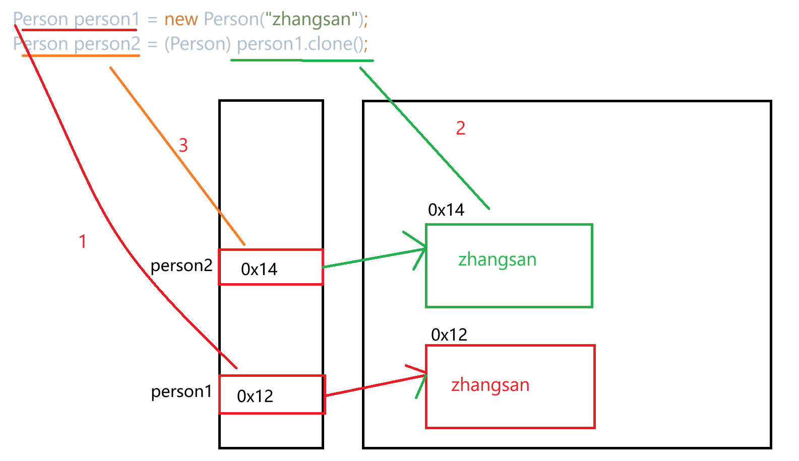 这时可以调用clone方法了,但是还是报错那是因为右边是Object类型,需要强制转换为Person类型,这样就不会报错了