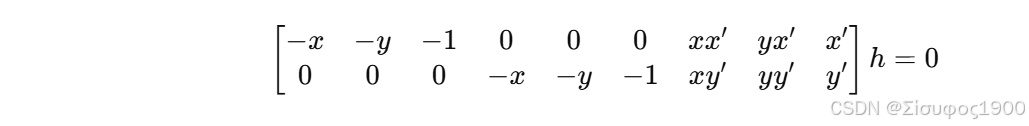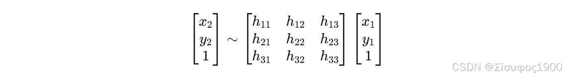 p₁ = (x₁, y₁, 1)ᵀ(齐次坐标),变换后得到p₂' = H * p₁。 -
