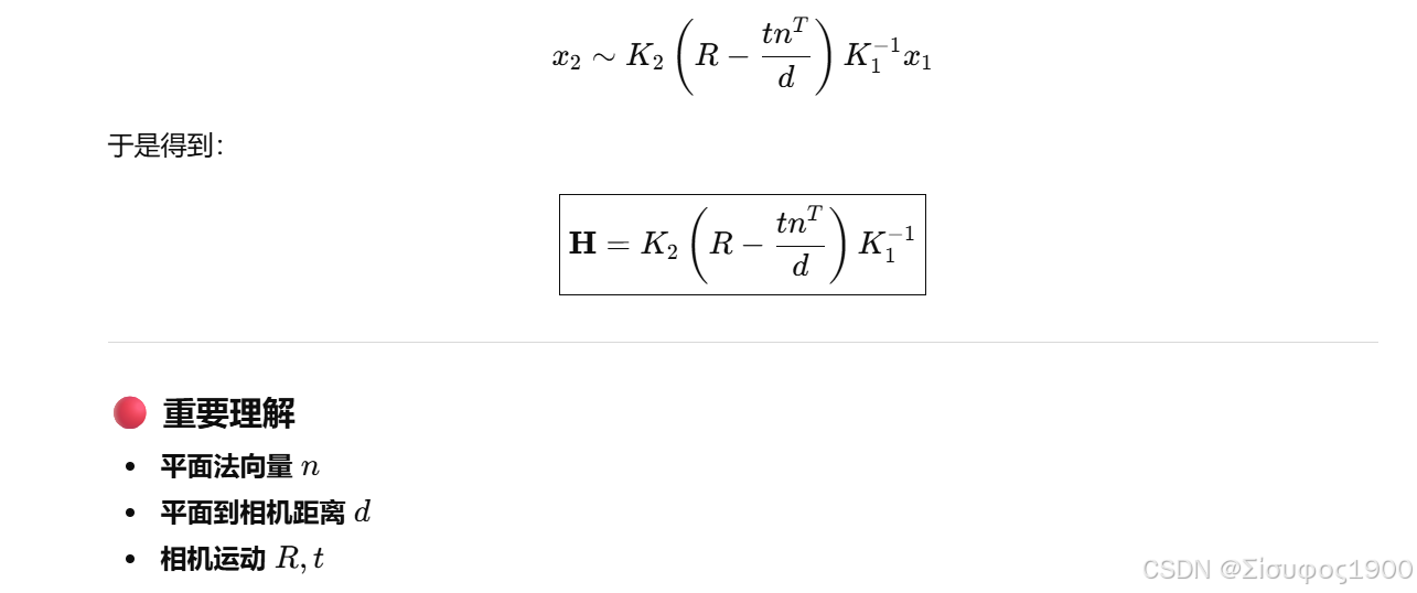 应矩阵是描述"同一平面"在两幅图像之间射影映射关系的 3×3 矩阵, 它用线性方法(DLT + SVD)求解,却表达了相机运动 + 平面几何