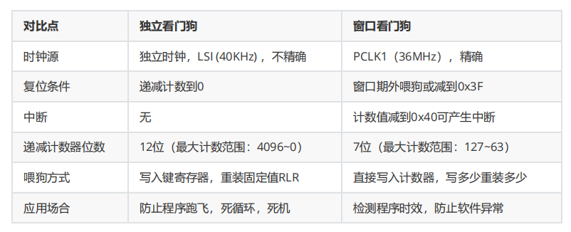 3. 独立看门狗和窗口看门狗的区别,如图: