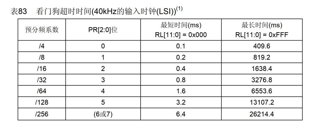• Tout是表示溢出时间,rlr是重装载值,psc是预分频系数,fiwdg是IWDG的时钟频率。如图: