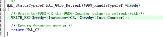 • "喂狗操作"的函数的源码,HAL_WWDG_Refresh()的源码,如图: