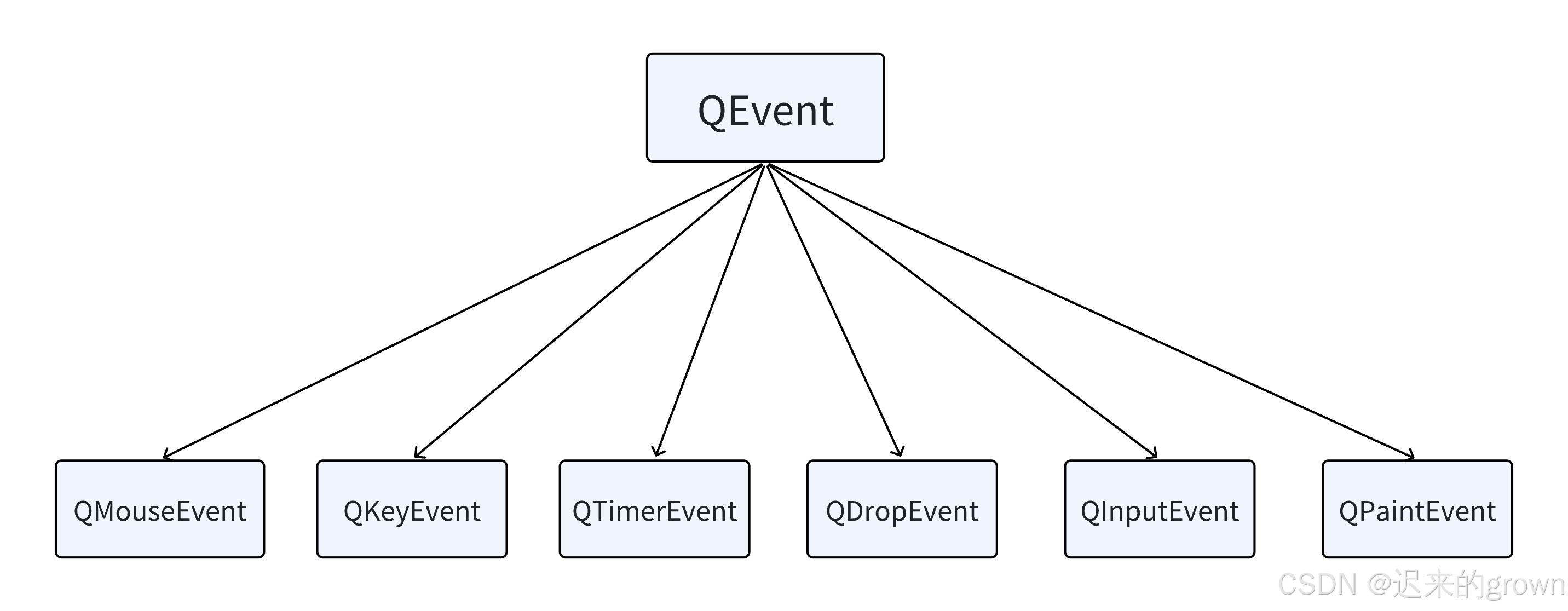 这里的QMouseEvent(鼠标事件)、QKeyEvent(键盘事件)、QTimerEvent(定时器事件)等等都是QEvent的子类