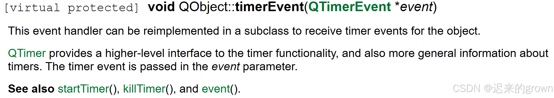 这个定时器事件和QTimer类非常类似,在使用时都需要调用开始方法、使用完成后也都需要调用终止方法。