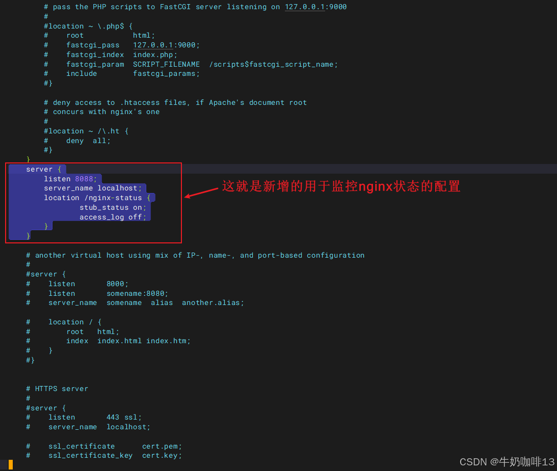 #【nginx.conf】文件中新增一个server虚拟主机用来监控nginx的状态
