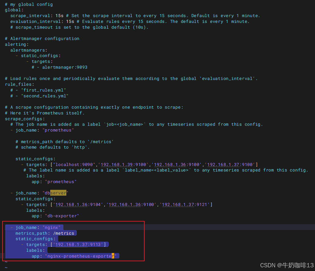 #【prometheus.yml】的最后【scrape_configs】下添加一个【job_name】