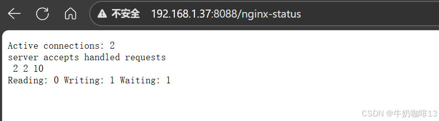 #重启nginx成功后访问【IP/:8088/nginx-status】即可查看到nginx的监控信息