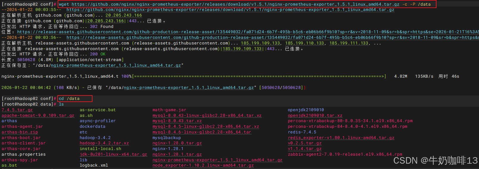 wget https://github.com/nginx/nginx-prometheus-exporter/releases/download/v1.5.1/nginx-prometheus-exporter_1.5.1_linux_amd64.tar.gz -c -P /data