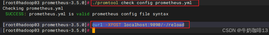 #验证prometheus.yml文件中的语法正确后热重载让配置生效
