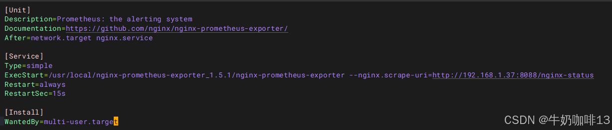 ExecStart=/usr/local/nginx-prometheus-exporter_1.5.1/nginx-prometheus-exporter --nginx.scrape-uri=http://192.168.1.37:8088/nginx-status