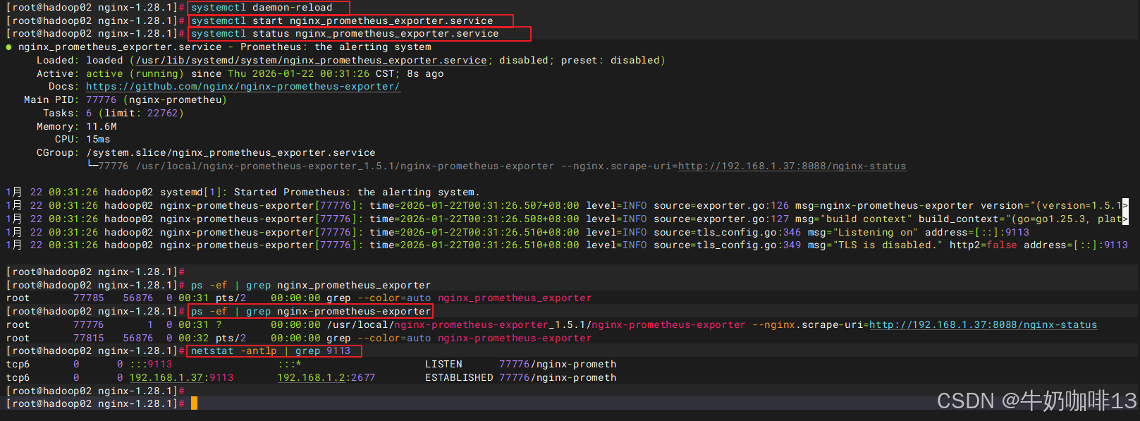 #注意2:若是启动nginx-prometheus-exporter报错,则需要【查看系统日志中nginx-prometheus-exporter相关的错误信息】后解决