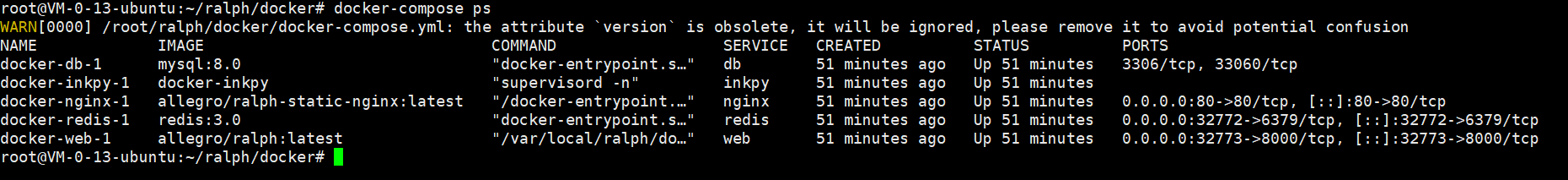 因为ralph对原文件中5.8版本数据库不兼容所以需要对docker-compose-dev.yml文件进行修改,改为8.0版本的数据库。