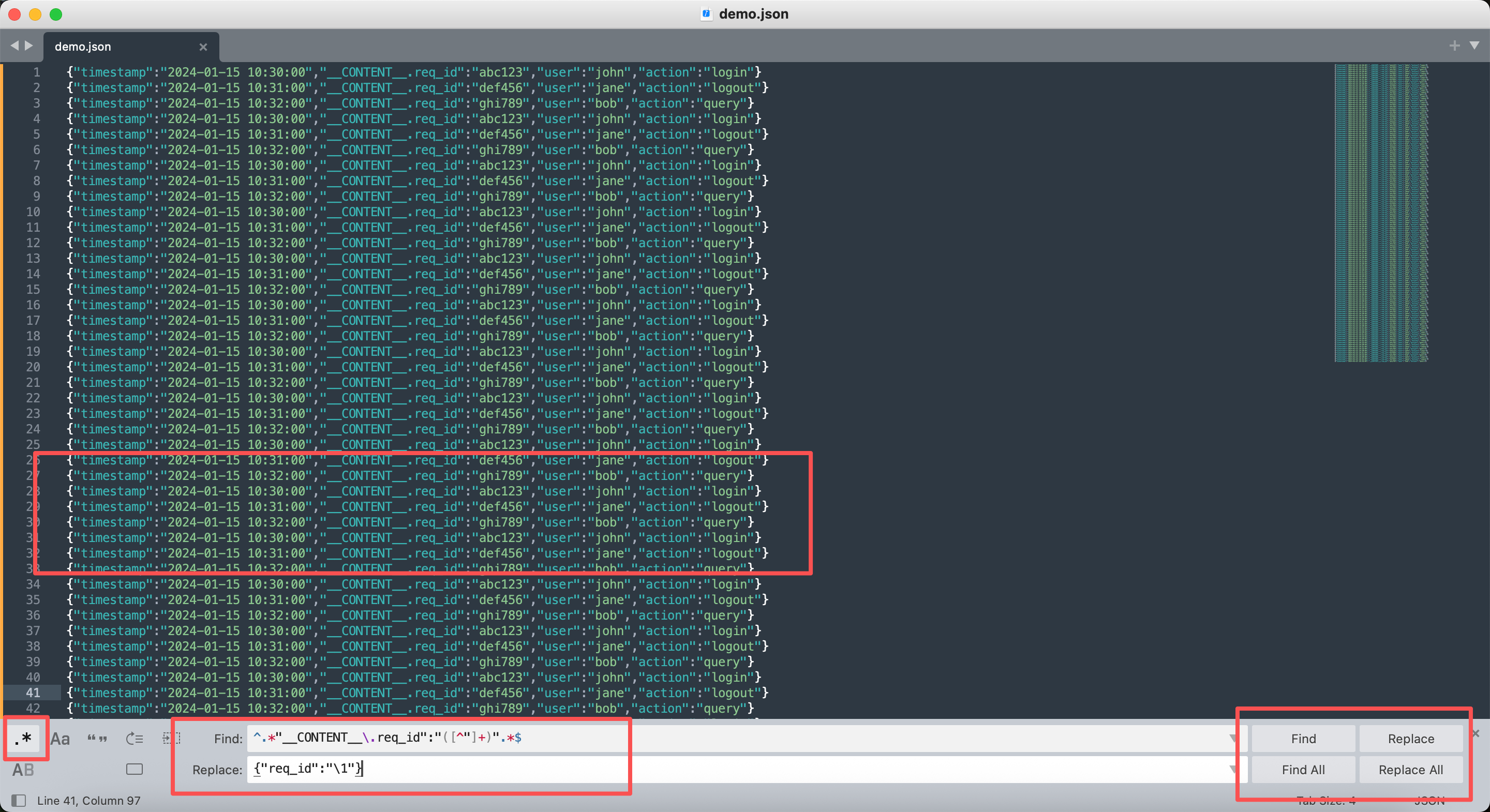 查找:^.*"action":"login".*"__CONTENT__\.req_id":"([^"]+)".*$