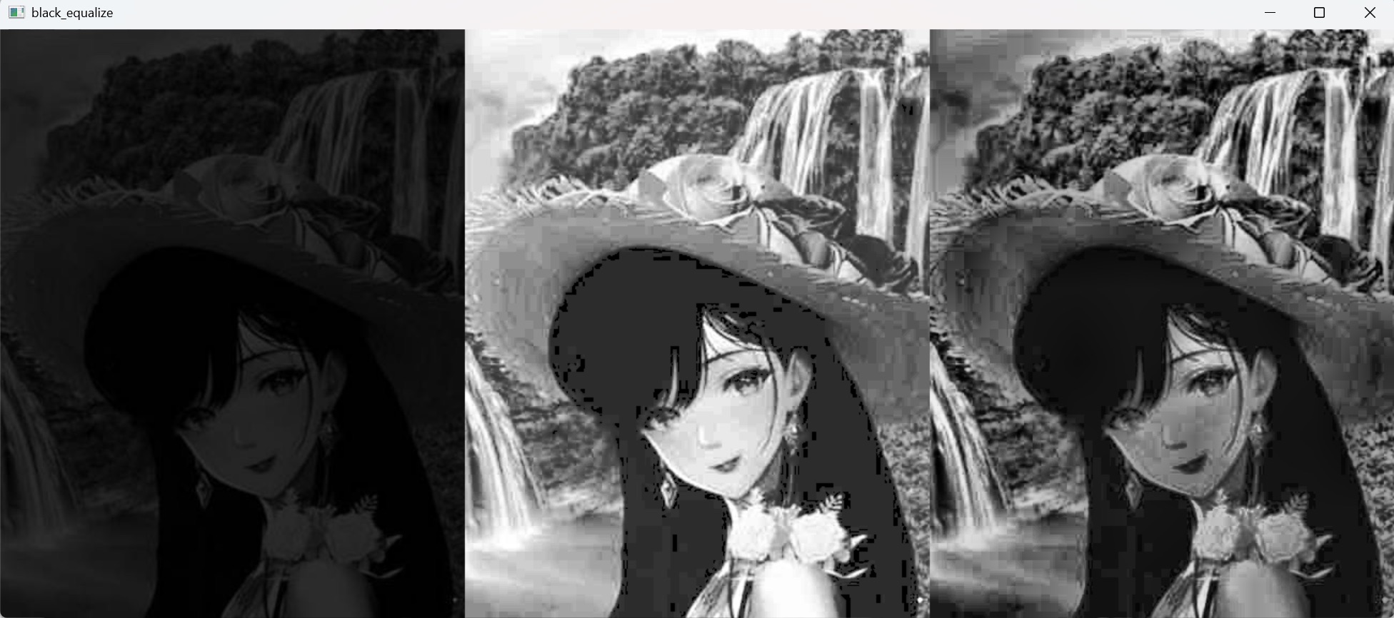 res = np.hstack((black, black_equalize))