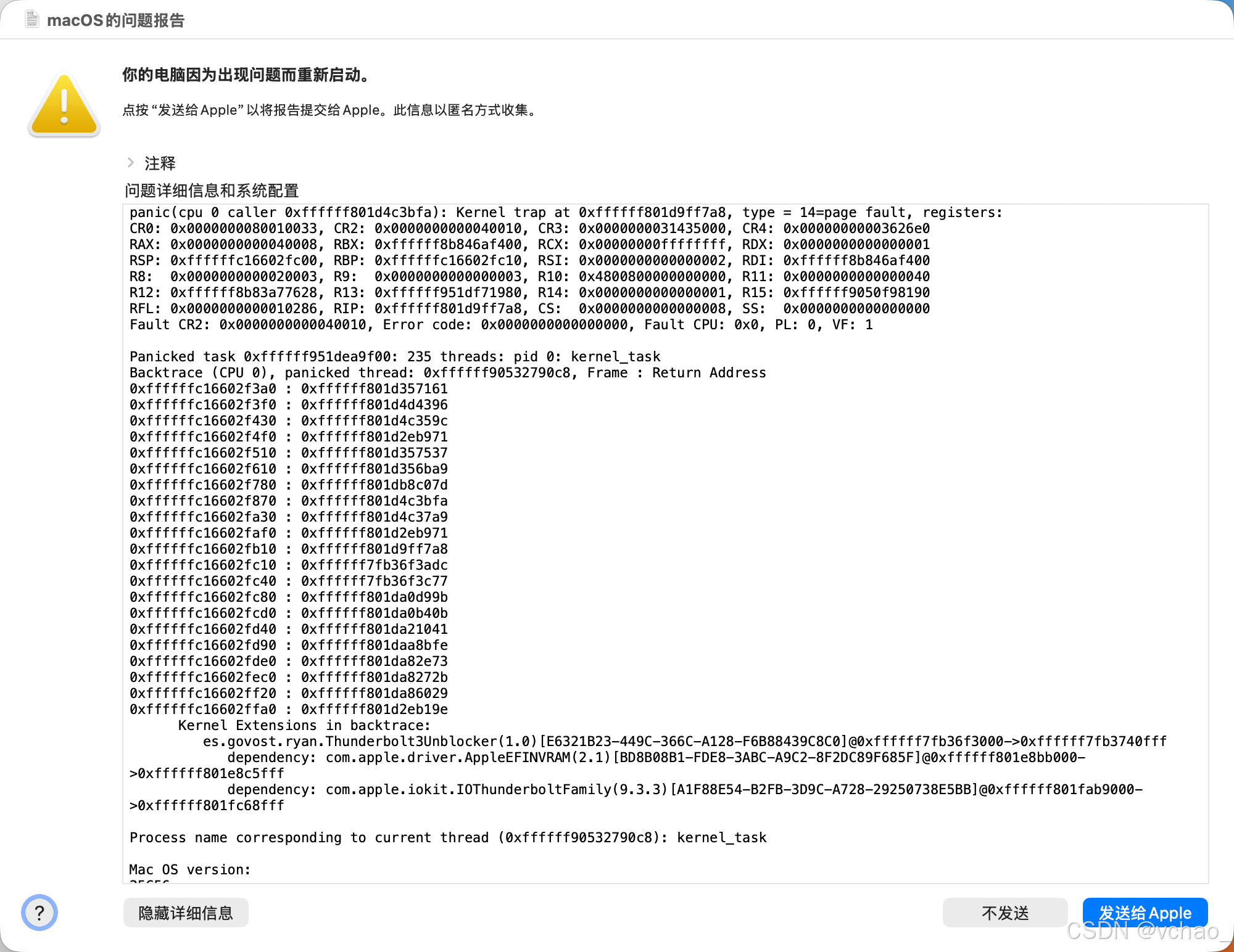 - 权限风险:作为内核扩展(Kext),该插件需要获取 macOS 内核的深度访问权限;一旦代码存在漏洞或与系统不兼容,会直接引发内核崩溃(Kernel Panic),具体表现为电脑无预警重启、黑屏,并弹出内核崩溃日志,严重影响系统稳定性。
