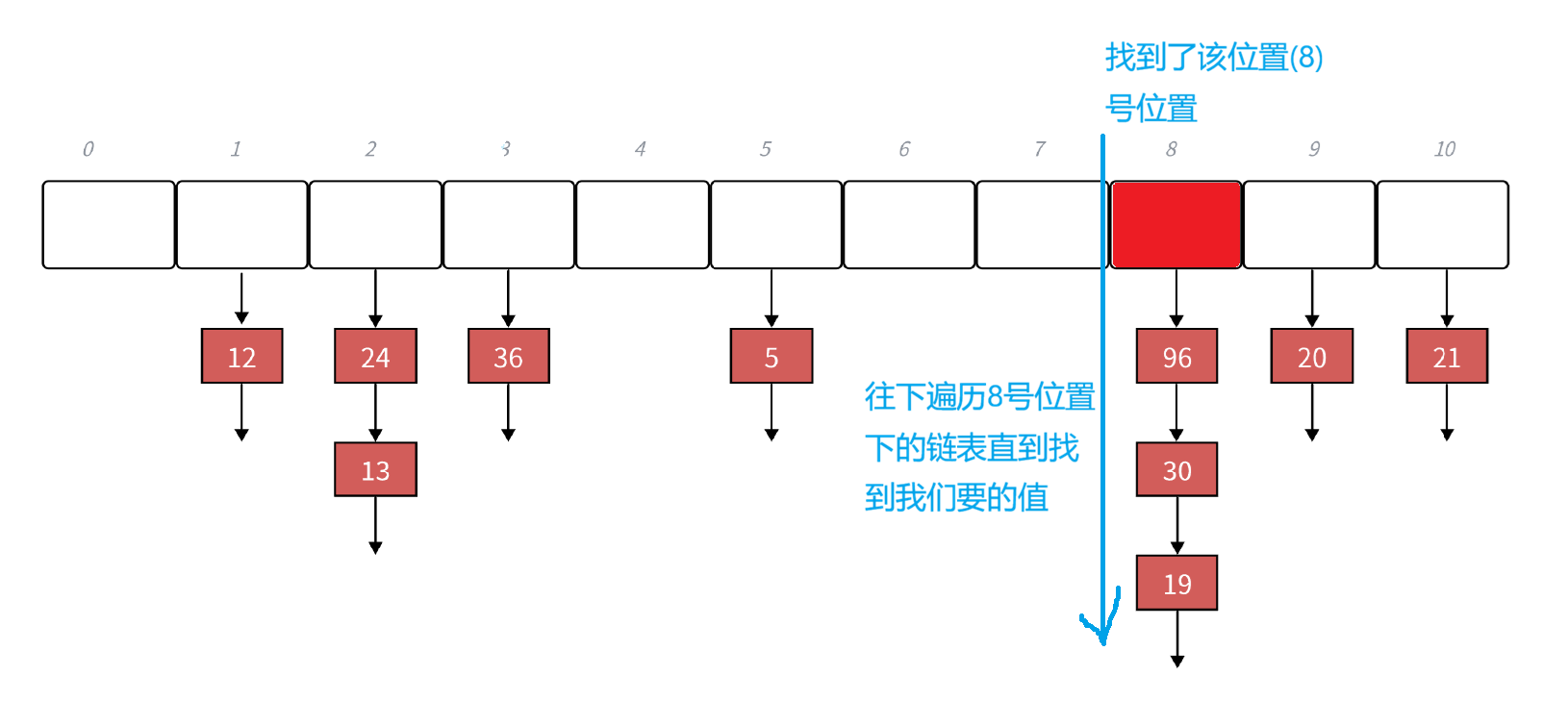 //找到这个位置之后就去遍历该位置上的链表