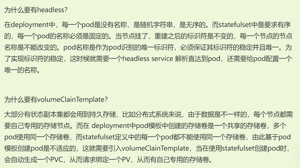 | 对比项 | 无状态(Deployment) | 有状态(StatefulSet) |