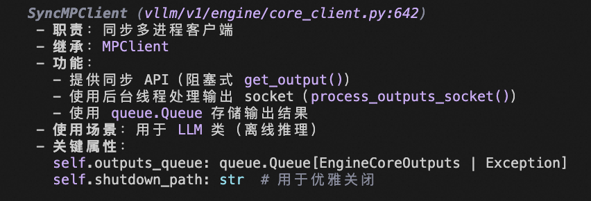 - SyncMPClient:负责同步模式特有的初始化(队列、后台线程)