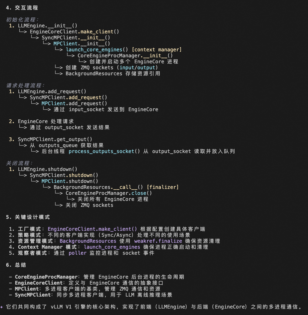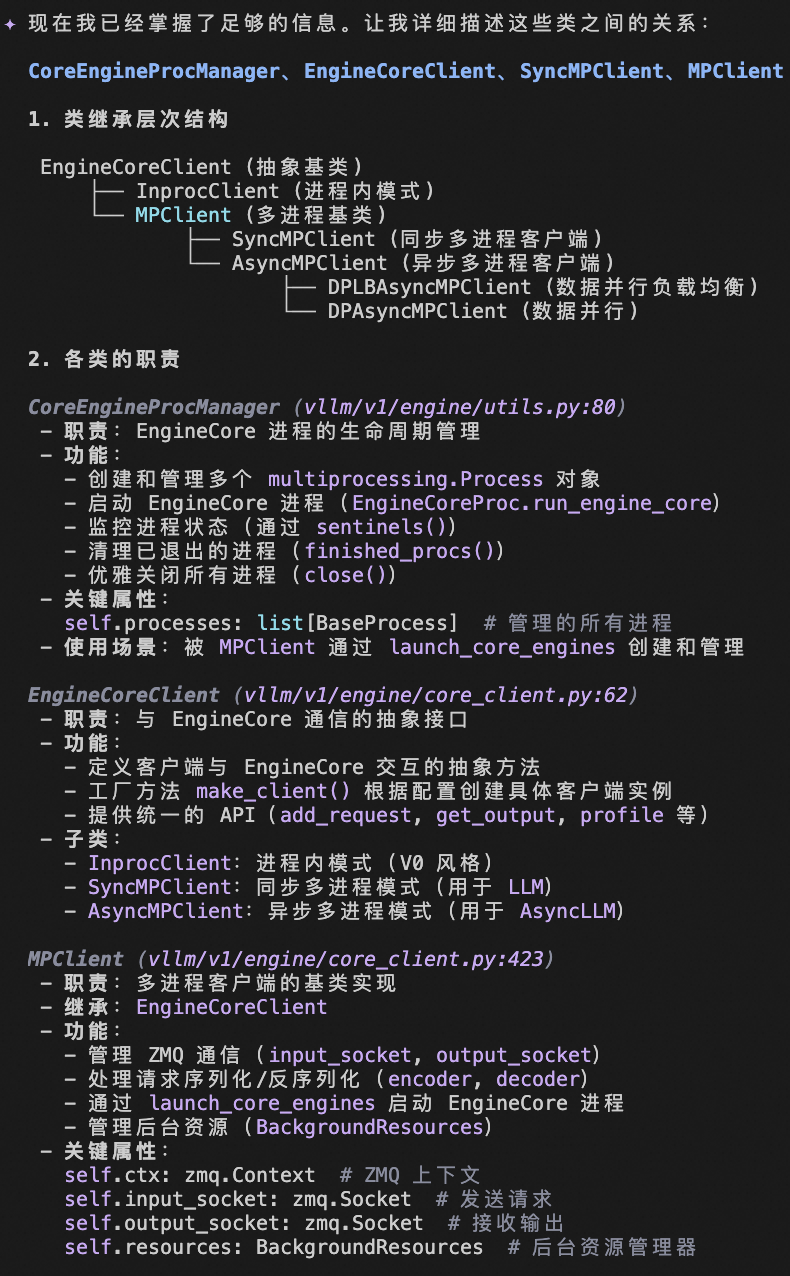 - MPClient:负责通用的多进程客户端初始化(ZMQ、EngineCore 启动)
