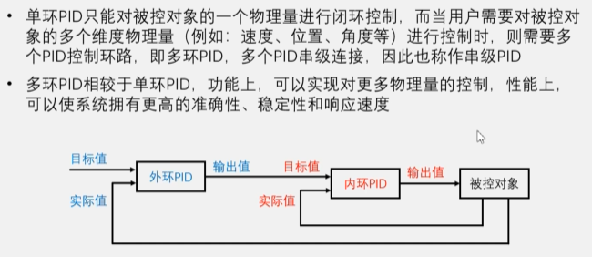 定速控制速度恒定,定位置控制位置不变,如果想电机以指定的速度旋转到指定的位置则需要同时调整两个物理量(速度,位置),这就需要双环PID。