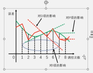 刚开始误差很大,P项输出较大的力,I项逐渐累积靠近目标值,当实际值等于目标值时,误差为0,P项立即不输出力了,但是I项之前一直在累加,此时形成了最大的正向力,定位置控制需要保持位置不变,不需要输出力,不然位置就不可能恒定,所以此时实际位置必须超过目标位置,超过目标后误差为负P项输出反向的调控力,I项任然输出正向调控力只不过积分项反向积累用于抵消之前累积过大的正向调控力正反积分抵消后,实际值与目标值重合。