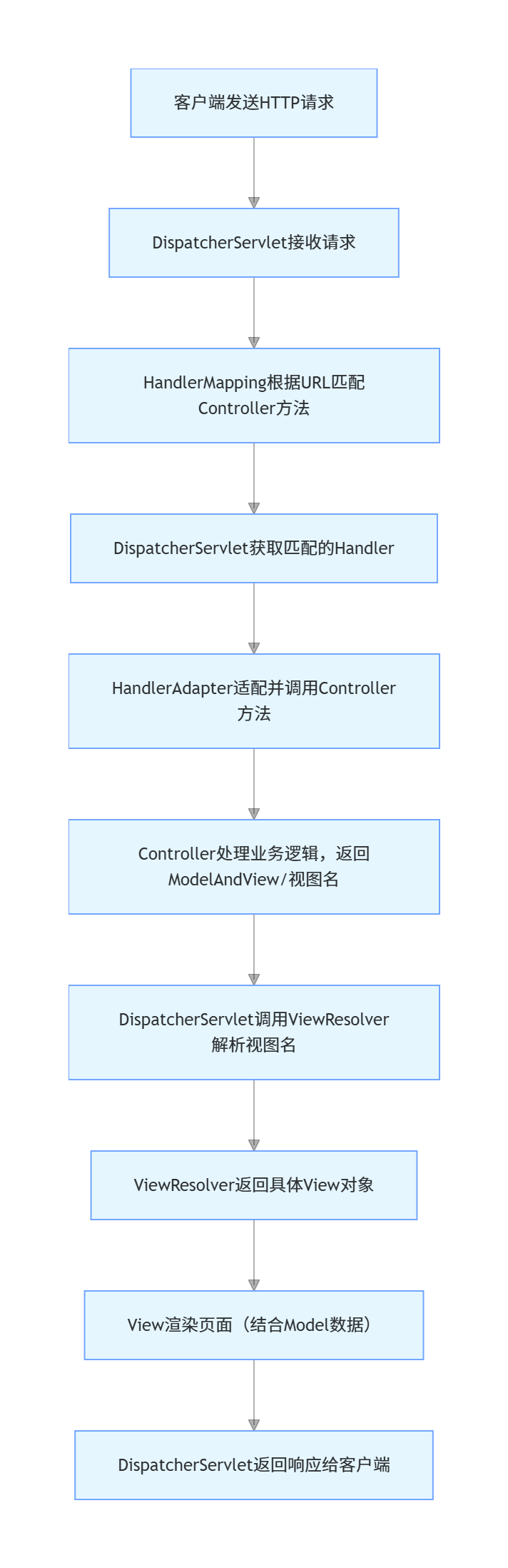 | ViewResolver | 视图解析器 | 将视图名解析为具体的视图对象(如 JSP/HTML) |
