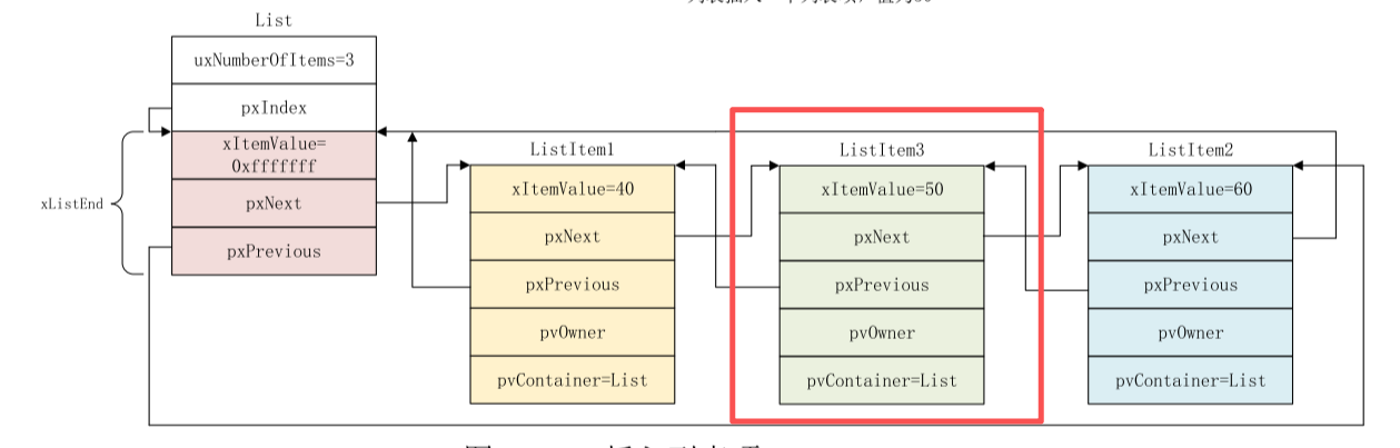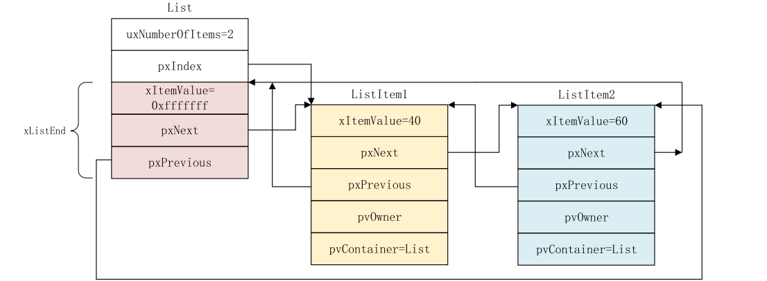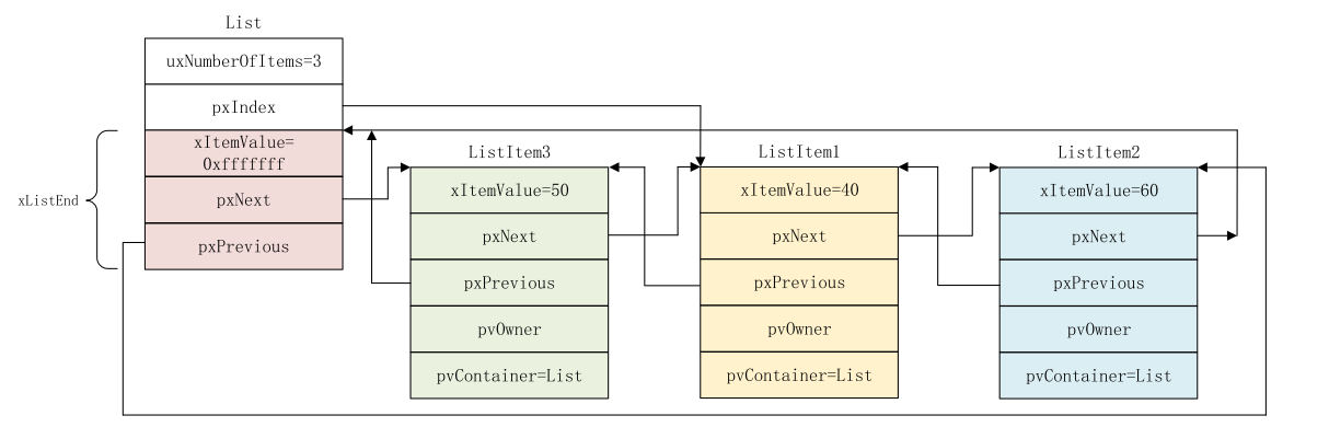 struct xLIST_ITEM * configLIST_VOLATILE pxPrevious; //pxPrevious 指向前一个列表项