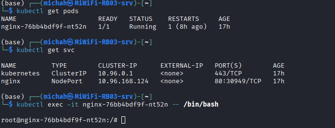 kubectl exec -it nginx-76bb4bdf9f-nt52n -- /bin/bash