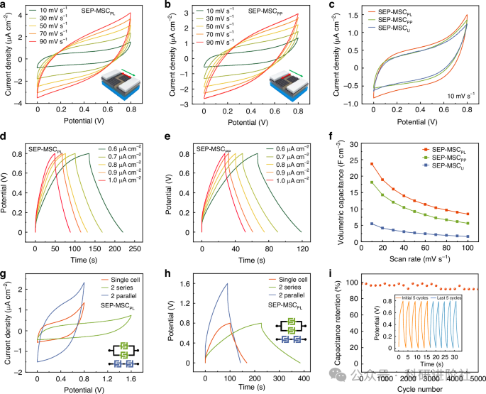 图4:SEP-MSCU、SEP-MSCPL与SEP-MSCPP器件电化学性能对比
