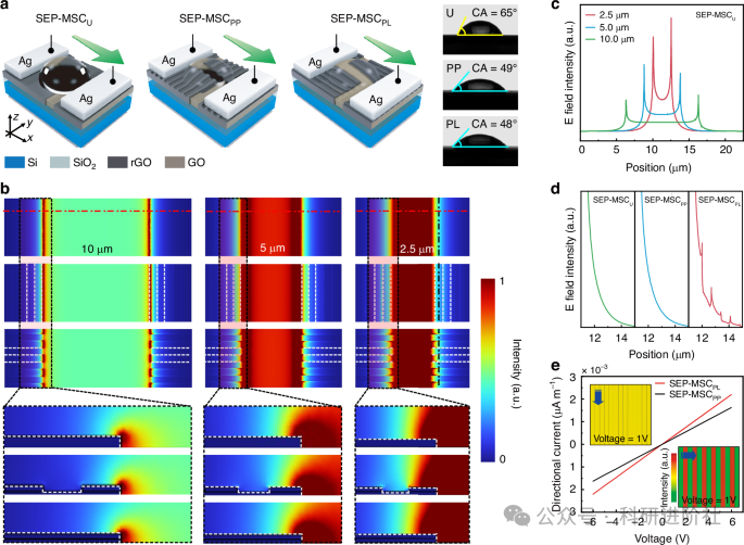 高性能:通过调控结构、润湿性与电场分布,器件体积比容量提升至41.4Fcm⁻³,循环5000次后容量保持率超过93%。