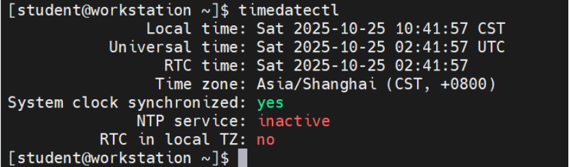 RTC time:硬件时钟(实时时钟,由主板电池供电)的时间,显示为 Sat 2025-10-25 02:10:22。