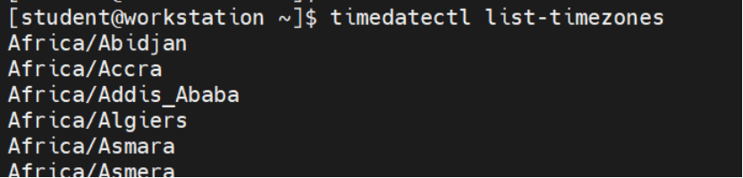 用于查看系统中所有支持的时区名称,这些时区遵循"地区/城市" 的命名格式(如Asia/Shanghai、Europe/Paris),源自全球标准时区数据库。