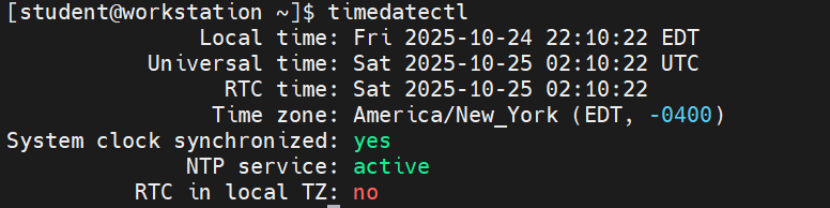 Local time:本地时间,显示为 Fri 2025-10-24 22:10:22 EDT,表示当前系统的本地时间是 2025 年 10 月 24 日 22:10:22,时区为 EDT(美国东部夏令时)。