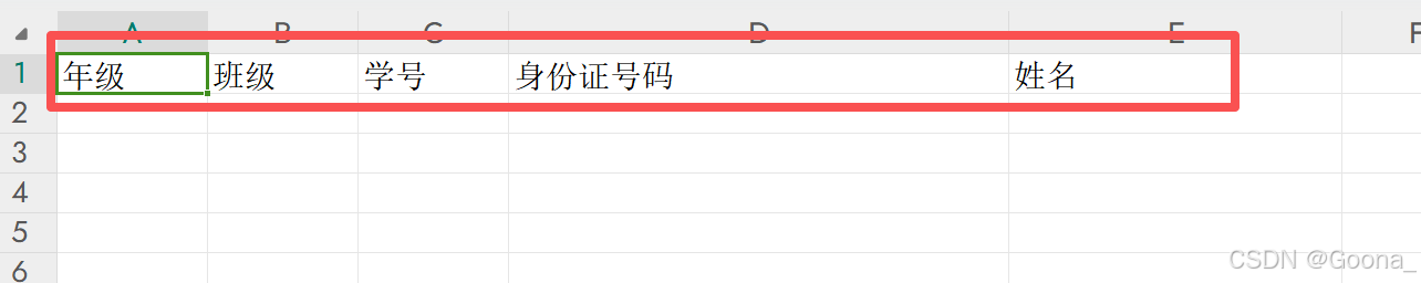 下载的Excel文件"学生信息模板"如下,按列录入学生信息再保存上传即可。