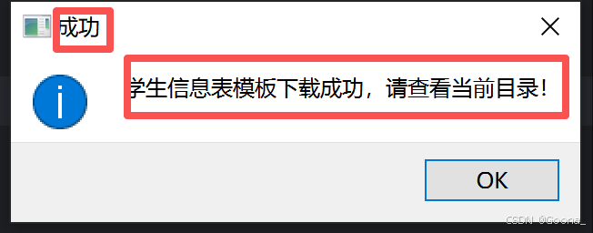 QtWidgets.QMessageBox.information(None, "成功", "学生信息表模板下载成功,请查看当前目录!")