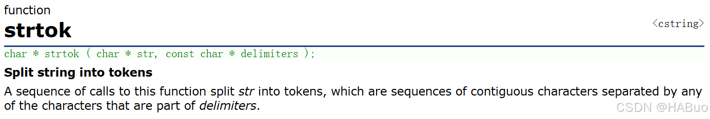 接下来就是将字符串以空格为分割打散了,在C语言的学习时有strtok函数可以帮助我们解决这个问题,它的功能如下: