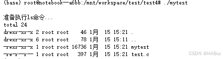 可以发现在打印完:准备执行ls命令后,就去执行了ls程序了,并且执行完后并没有打印"这行永远不会执行"!