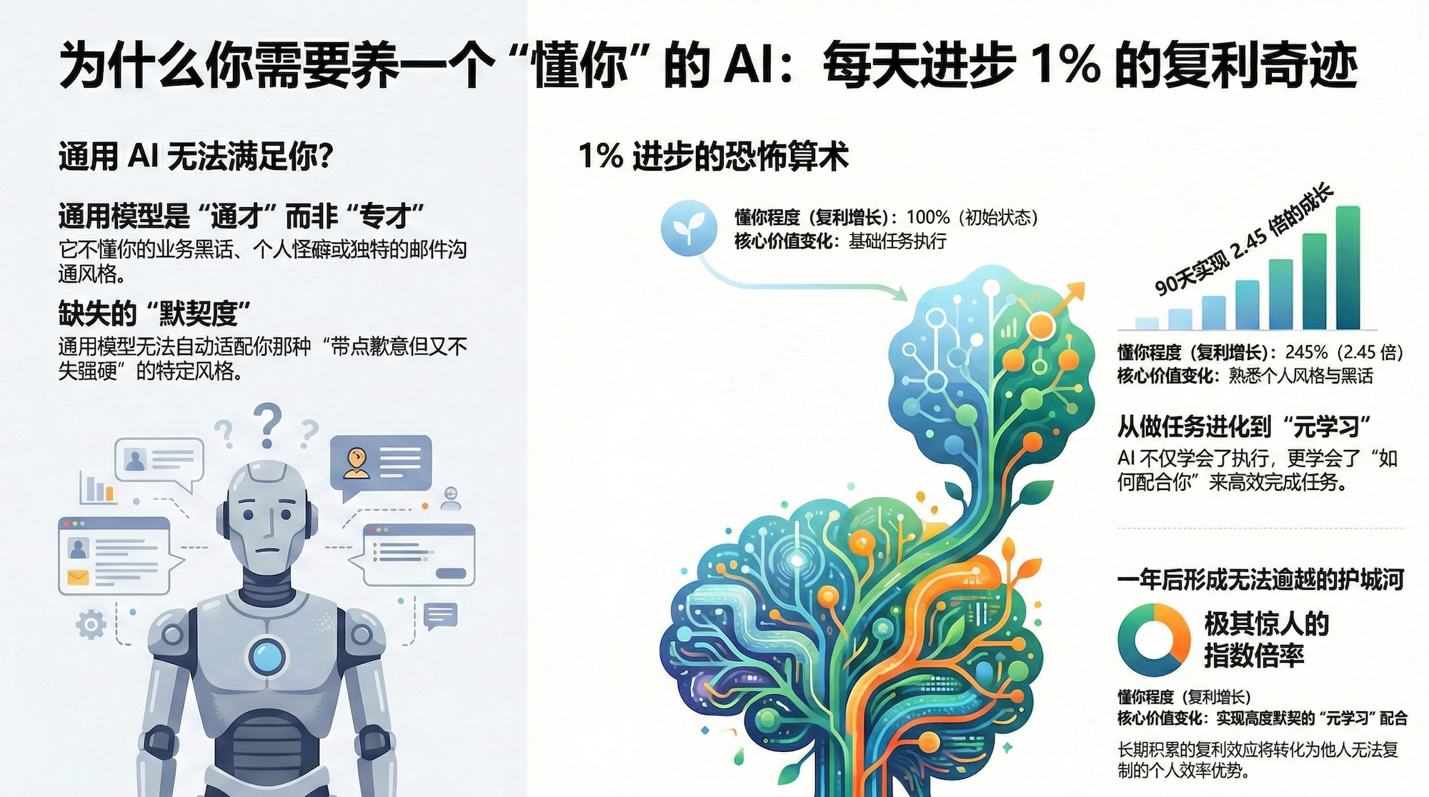 这种复利效应在一年后将变得无法逾越。这不仅仅是效率提升,这是"元学习"------AI 不仅学会了做任务,还学会了"如何配合你做任务"。