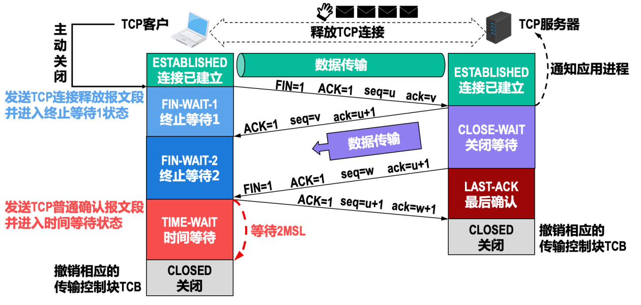 ○ 确认号ack字段的值设置为u+1,这是对TCP连接释放报文段的确认。