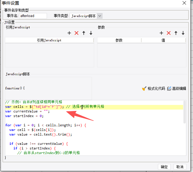 在多个ai工具中搜索的解决方案都是在 单元格属性 模块的 其他模块中,把 连续相同值合并 和 扩展后合并 两个选项勾选中,本人当前的 finereport 设计器版本为 11.0.32,找了一圈确实没找到相关的选项,实在没辙,只好改用js判断来实现。具体如下: